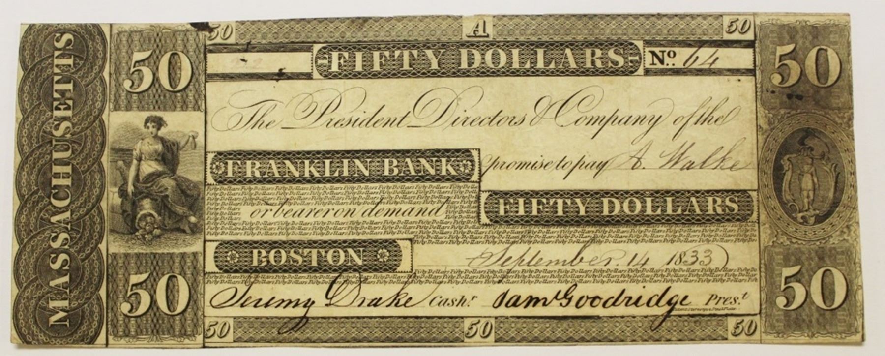 1833 TOUGH HIGH DENOMINATION. PERKINS PLATE. XF. ESTIMATE: $175-$250