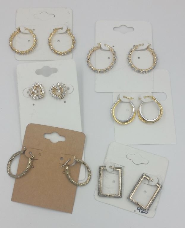 GOLD TONED STERLING SILVER, FOR PIERCED EARS, SEE PHOTOS FOR STYLES. PRE-OWNED. ESTIMATE: $75-$100