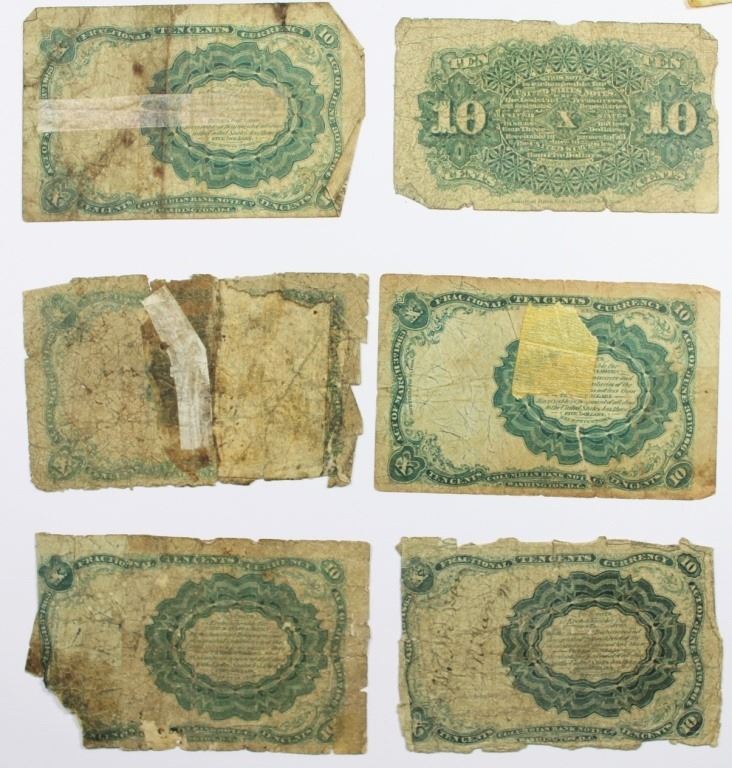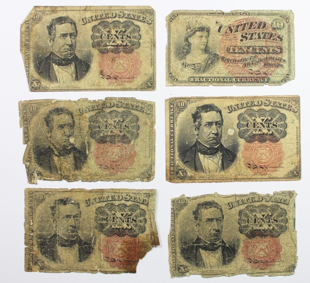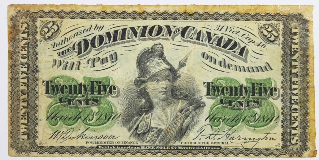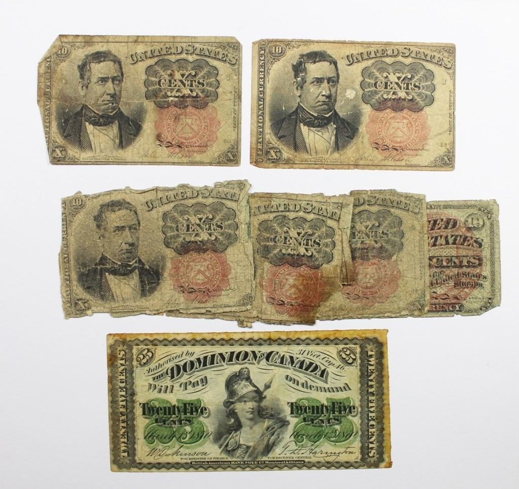 LOW GRADE (5) F1264, (1) F1257 AND (1) DOMINION OF CANADA TWENTY FIVE CENT. ESTIMATE: $80-$100