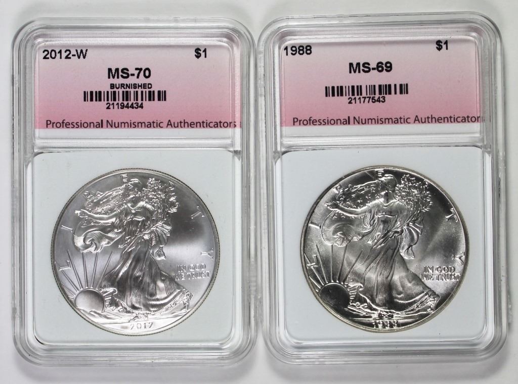 PNA GRADED 1988 MS 69 AND 2012-W MS 70. ESTIMATE: $175-$250