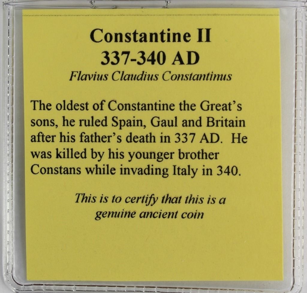 337-340 AD. CERTIFIED AND BEAUTIFUL! ESTIMATE: $125-$150