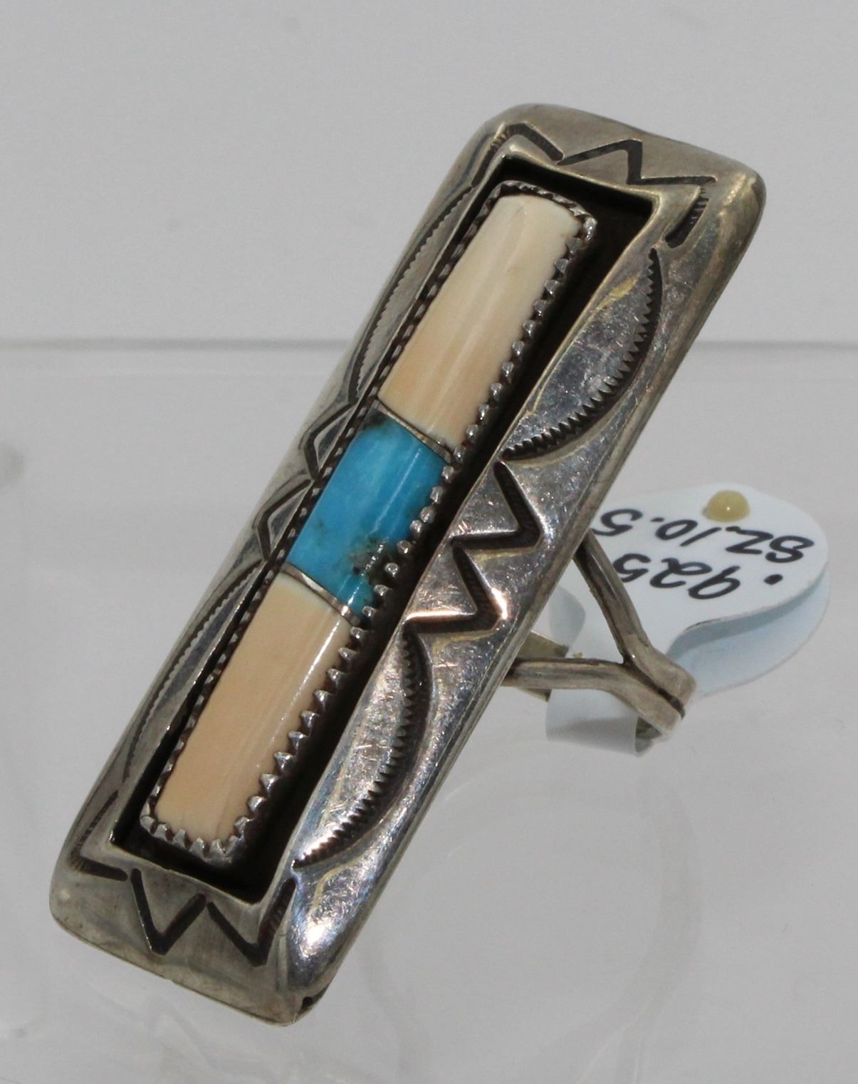 AZTEC STERLING SILVER RING. SIZE 10.5. BEAUTIFUL STATEMENT RING. 16.6 GRAMS. PRE-OWNED. ESTIMATE:$50-$75