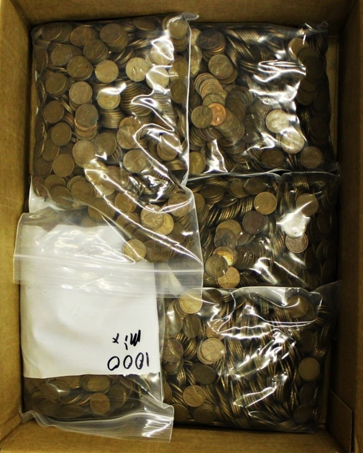 BAG OF 5000 COUNT WHEAT CENTS, 1958 & OLDER