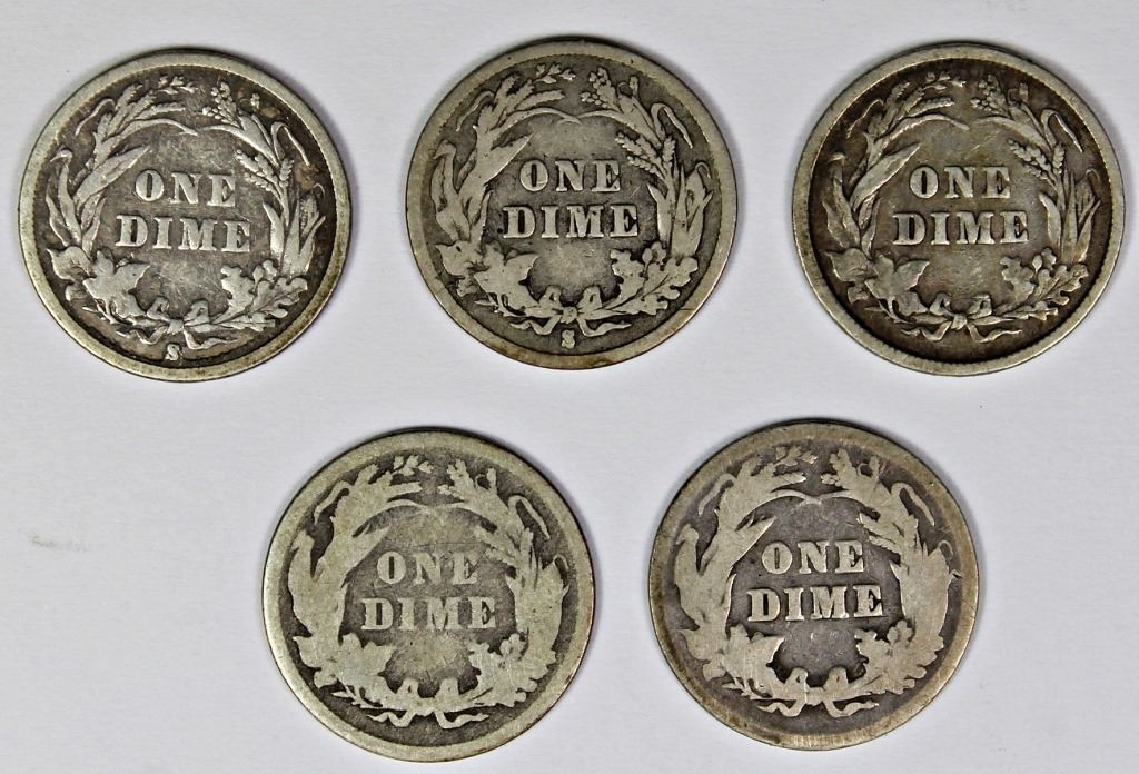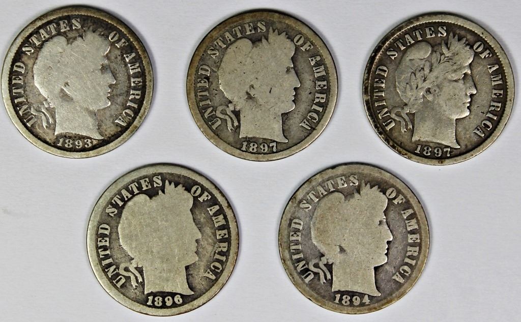 1893-S G-VG, 1894 G, 1896 G, 1897 VG+, AND 1897-D G-VG. ESTIMATE: $80-$110