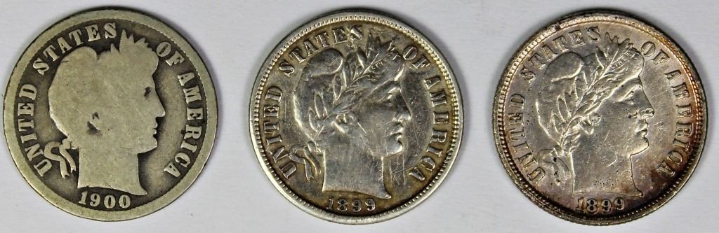 1899-S XF, 1899 XF, AND 1900-O G. ESTIMATE: $95-$125