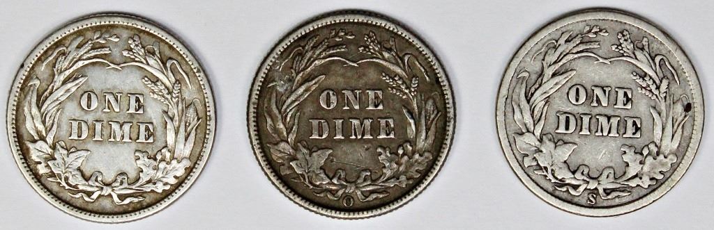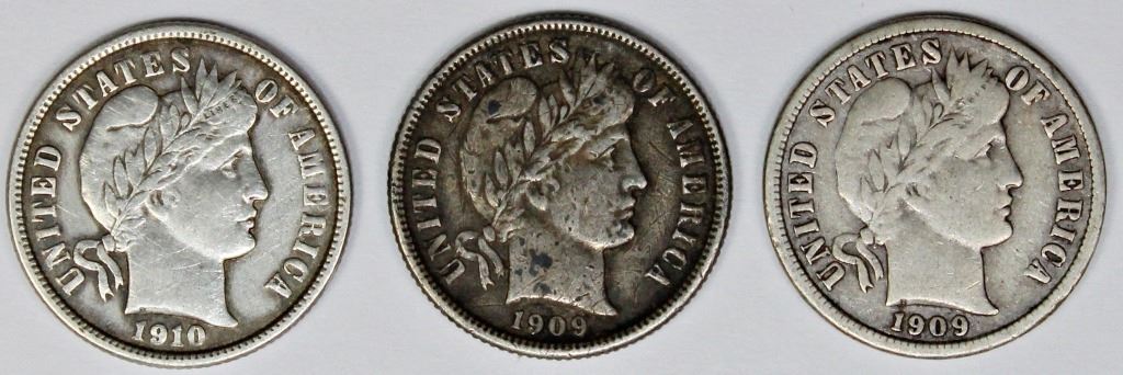 1909-O ORIGINAL XF+, 1909-S FINE AND 1910 XF. ESTIMATE: $200-$250