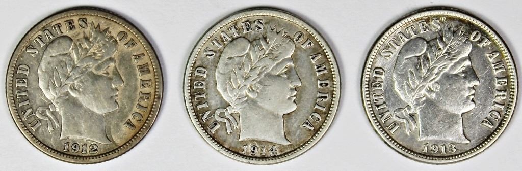 1912-S XF, 1913 XF-AU, AND 1914-D XF. ESTIMATE: $85-$110