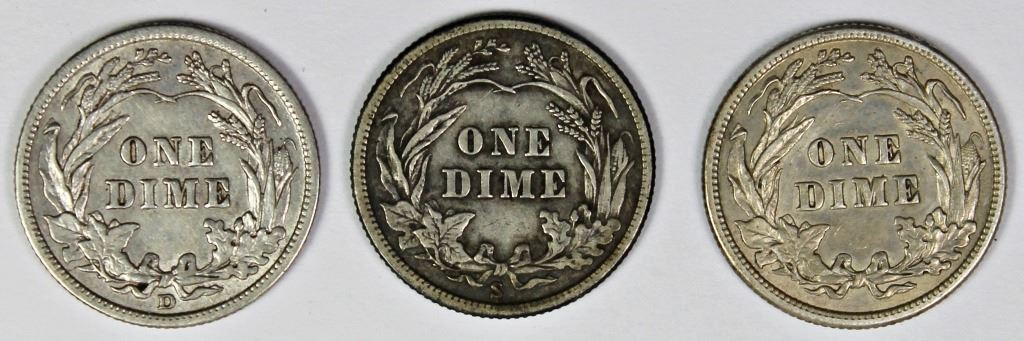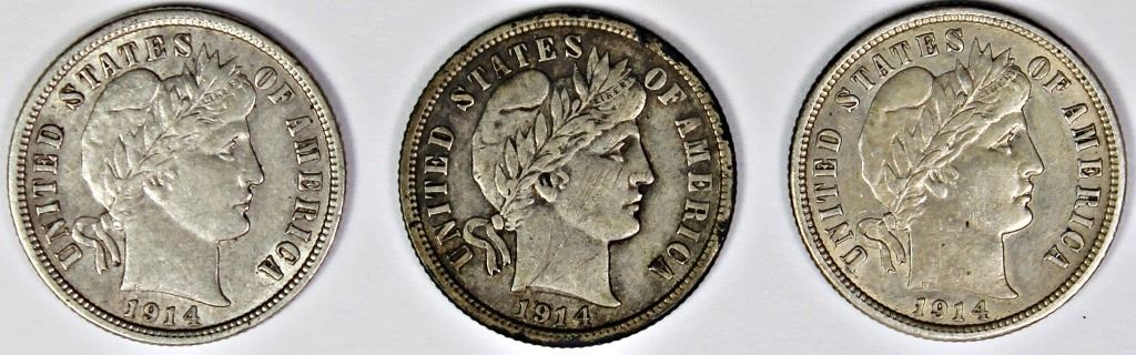 1914-D XF-AU, 1914 XF-AU, AND 1914-S XF. ESTIMATE: $95-$125
