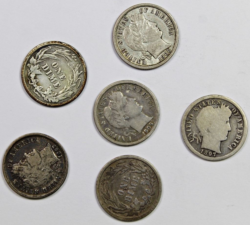 1893 VF, 1897-S G, 1894 G, 1906 XF, 1907-S FINE, AND1909-O FINE. ESTIMATE: $125-$150