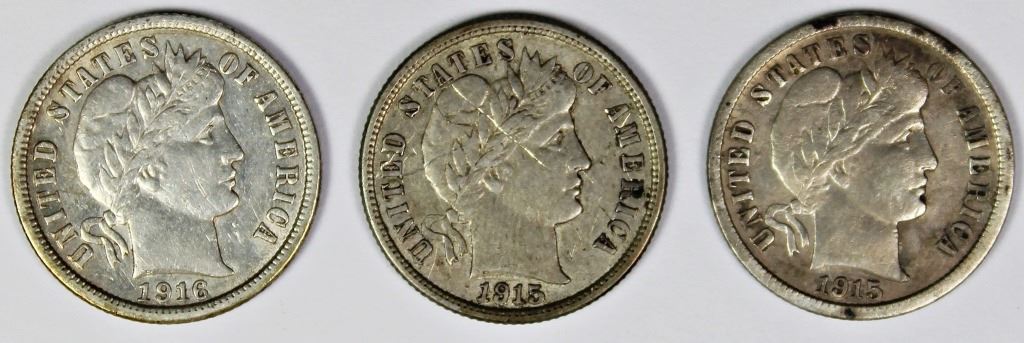 1915-S XF SCRATCH, 1915-S VF SPOTS, AND 1916 XF-AU. ESTIMATE: $120-$150