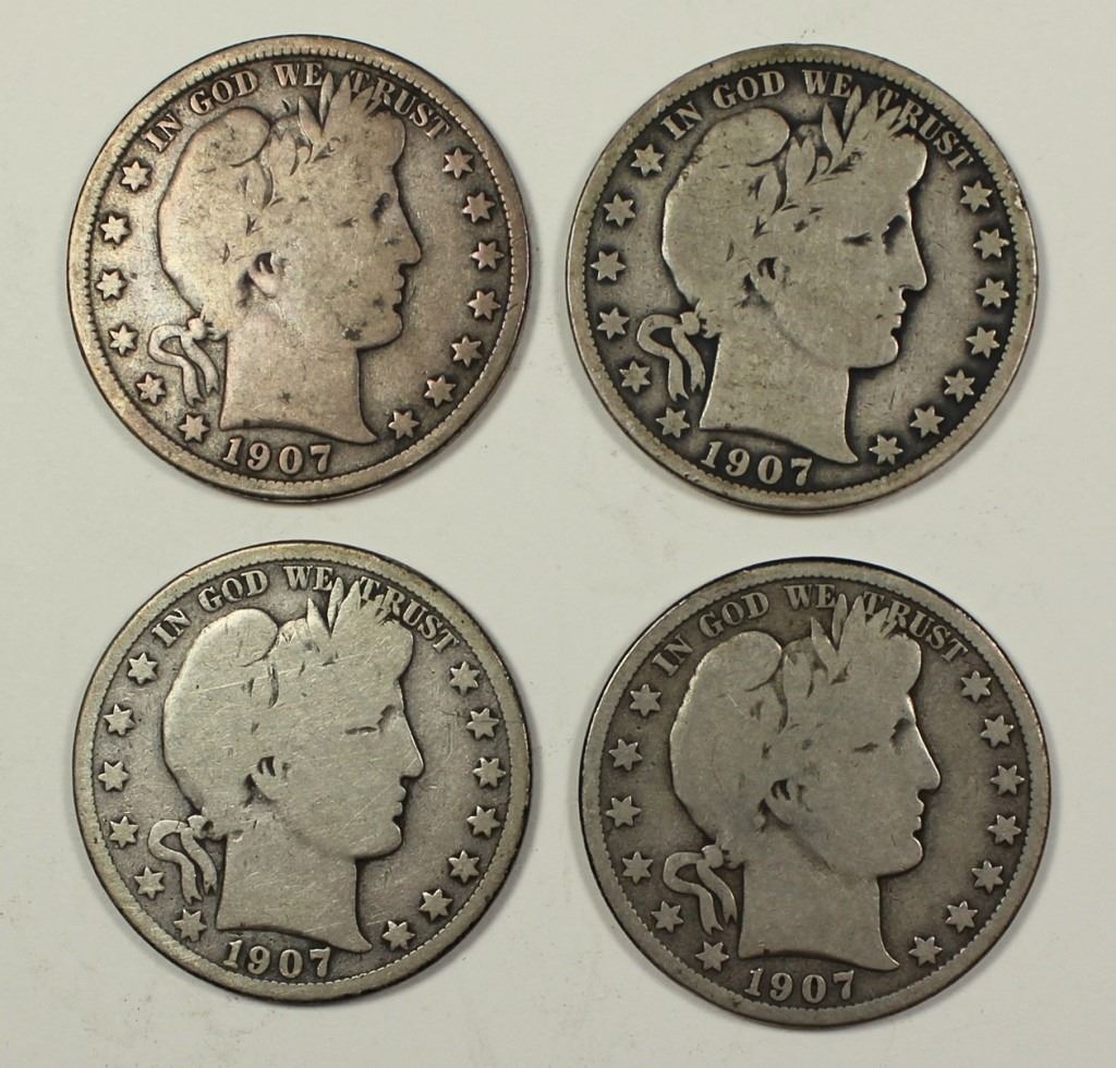 BARBER HALF DOLLARS: 1907 VG, 1907-S VG,