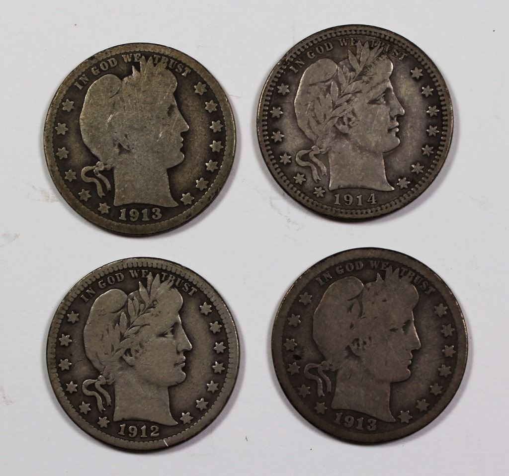 BARBER QUARTERS: 1914 VF/XF, 1913-D GOOD,