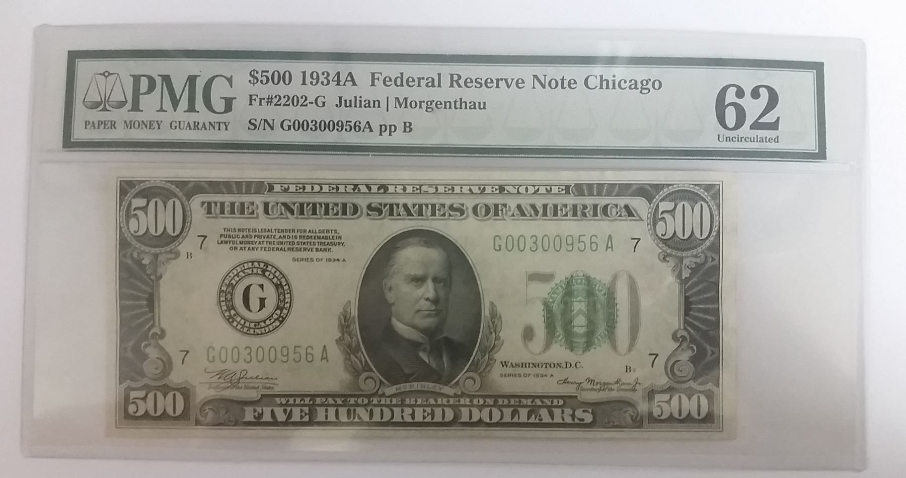 BEAUTIFUL 1934-A $500 BILL PMG 62 RARE! TRY TO FIND THESE! ESTIMATE: $2500-$3000
