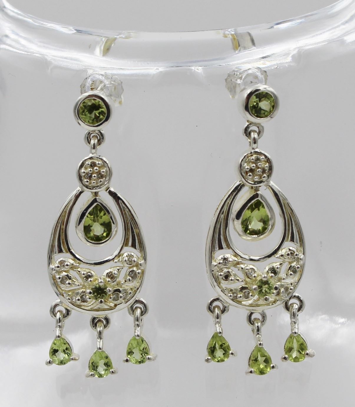 BEAUTIFUL CHANDELIER STERLING SILVER AND PERIDOT COLORED GEMSTONE EARRINGS. 8.4 GRAMS. PRE-OWNED. ESTIMATE: $75-$100