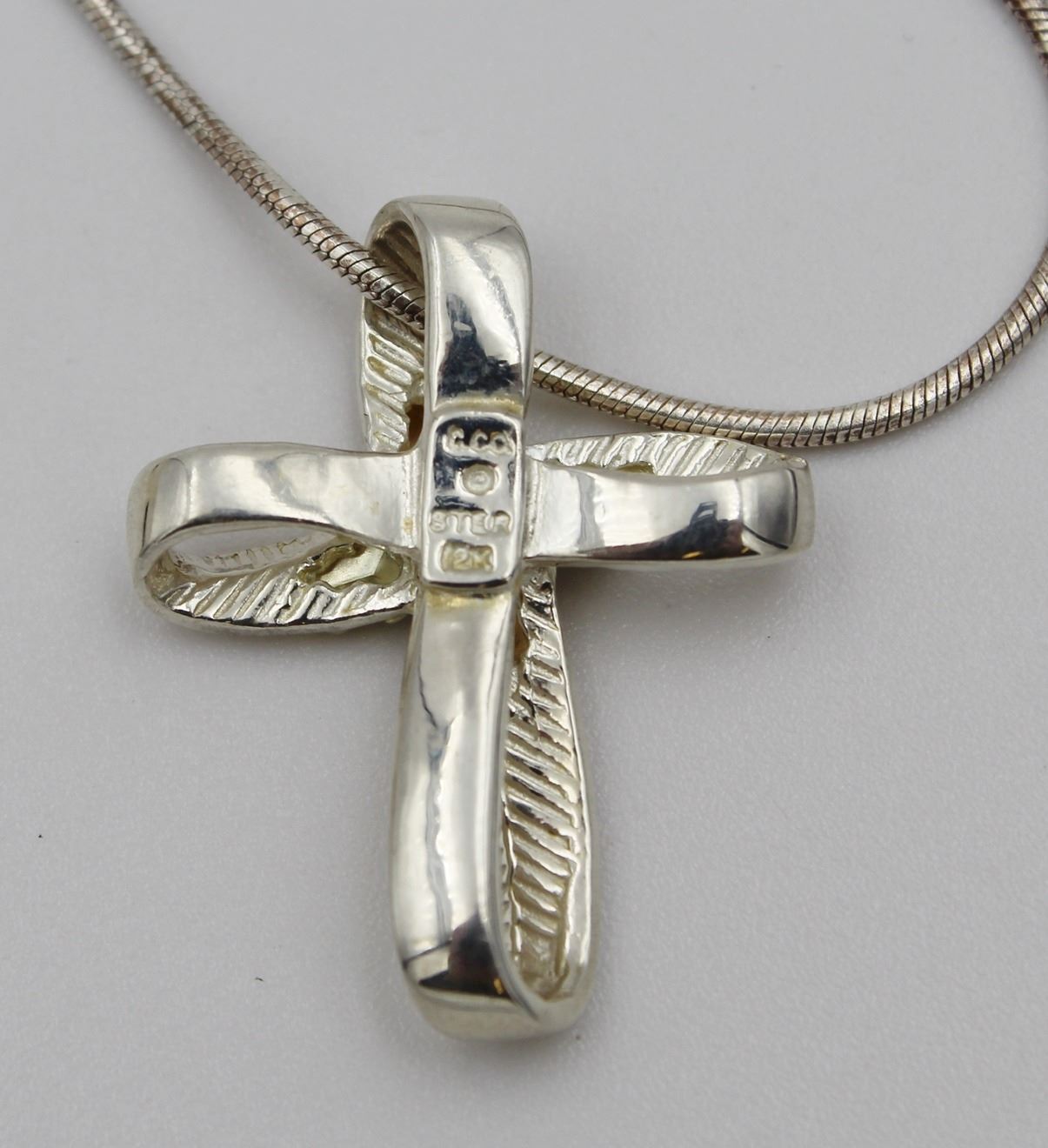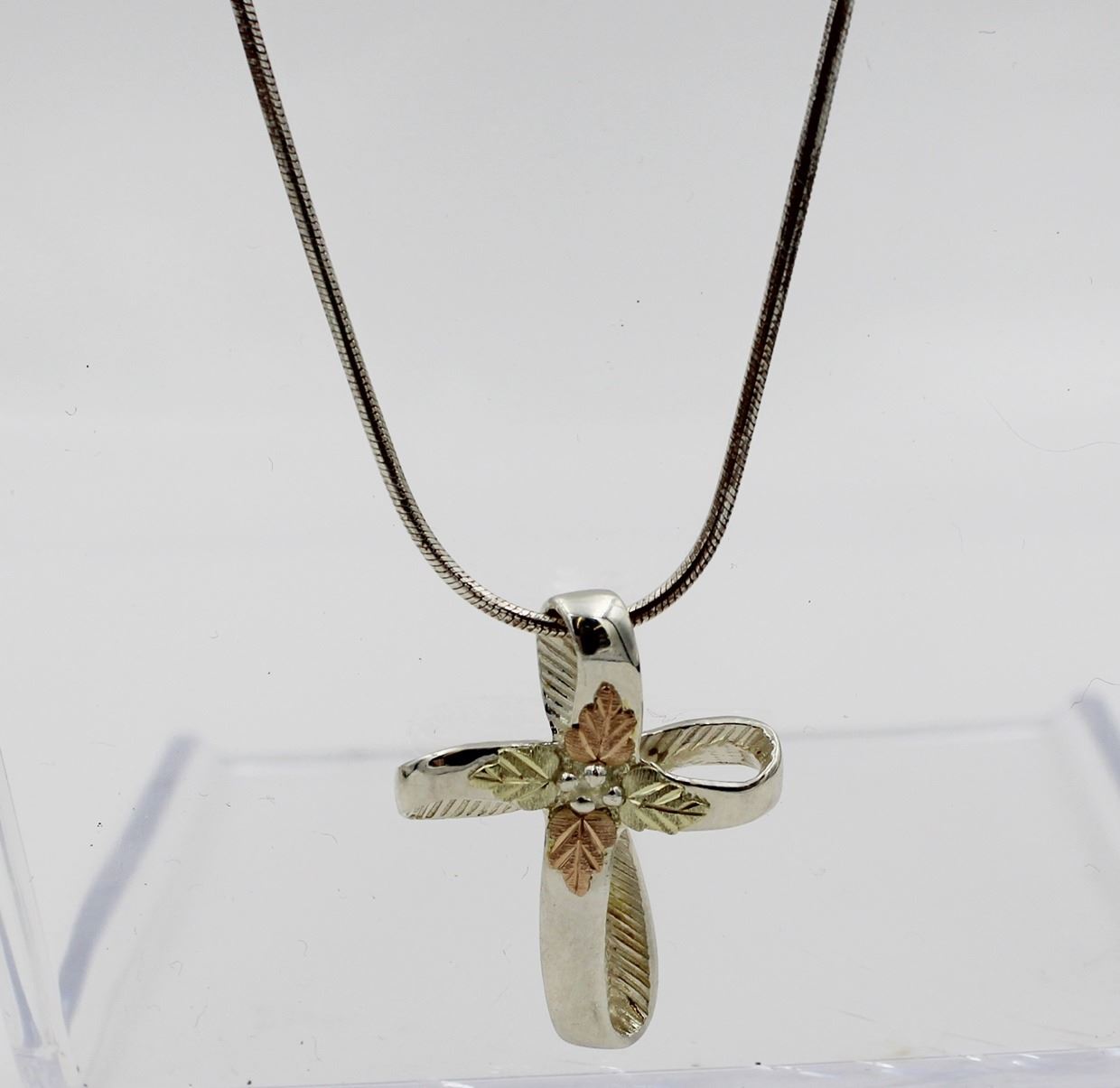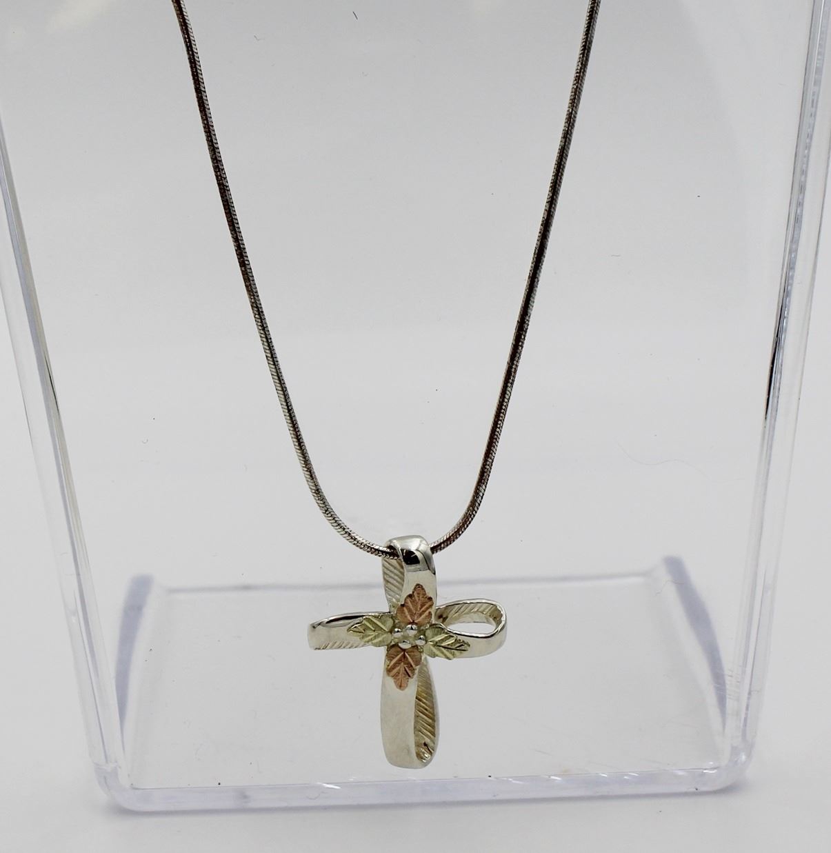BEAUTIFUL STERLING SILVER AND 12K GOLD CROSS PENDANT ON 17.5" CHAIN. PRE-OWNED. 8.1 GRAM. ESTIMATE:$75-$100