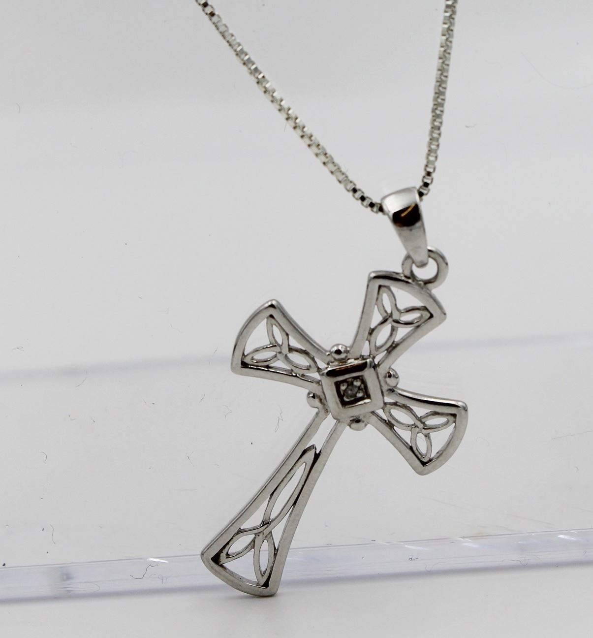 BEAUTIFUL STERLING SILVER CROSS NECKLACE WITH DIAMOND IN THE CENTER
