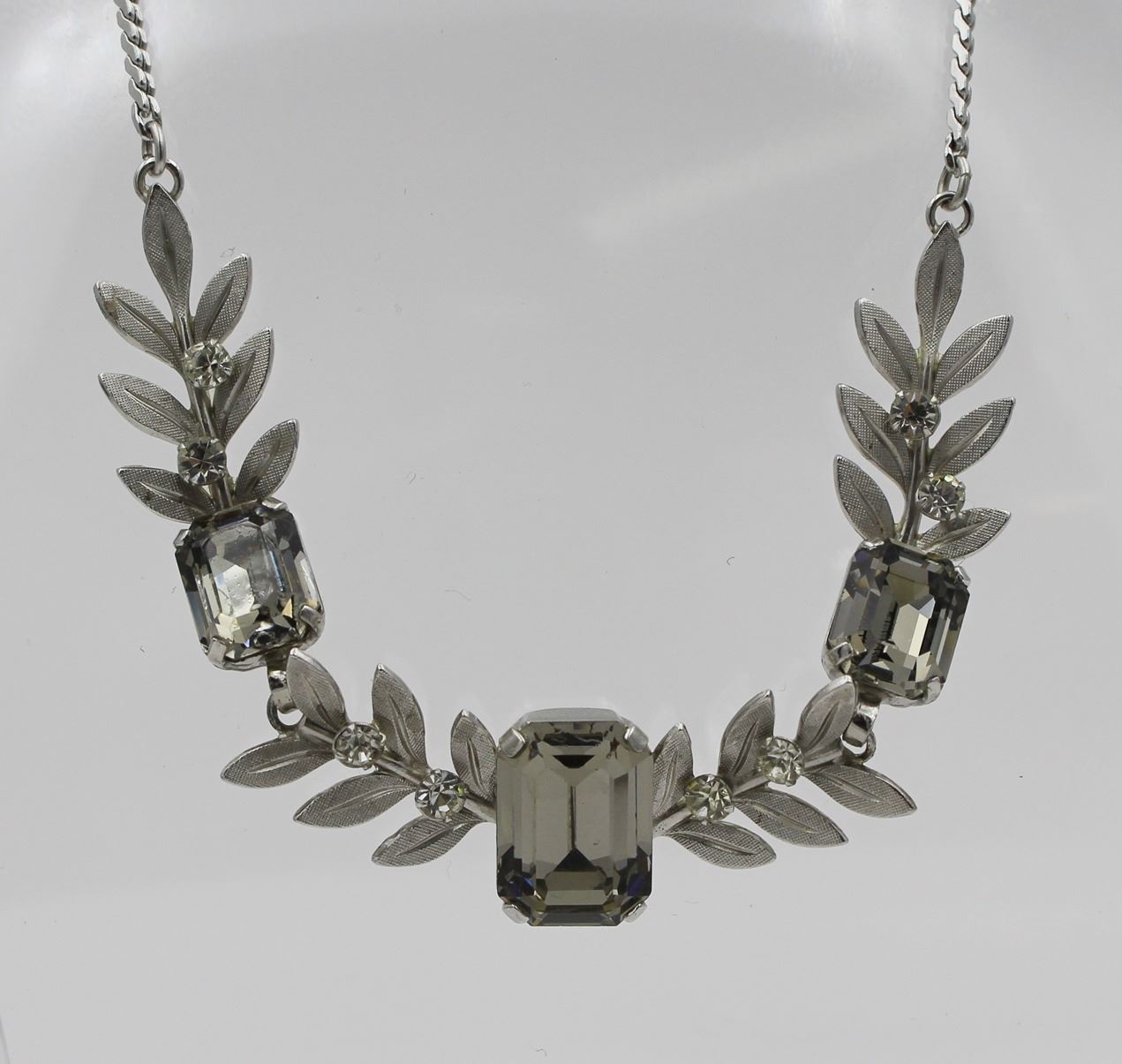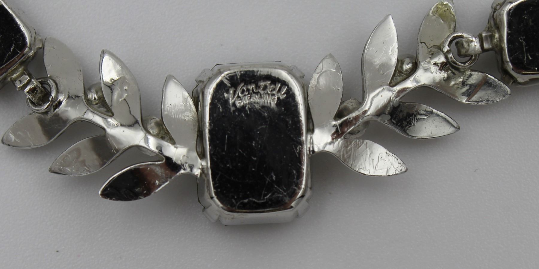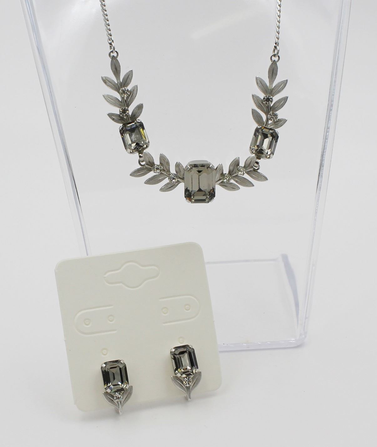 BEAUTIFUL VANDELL SIGNED .925 STERLING SILVER ORNATE LEAF NECKLACE AND EARRING SET. NECKLACE LENGTH 15.5". EARRINGS ARE TWIST-BACK. GORGEOUS DEEP SMOKEY STONES. PRE-OWNED. 20 GRAMS TOTAL. ESTIMATE: $200-$225