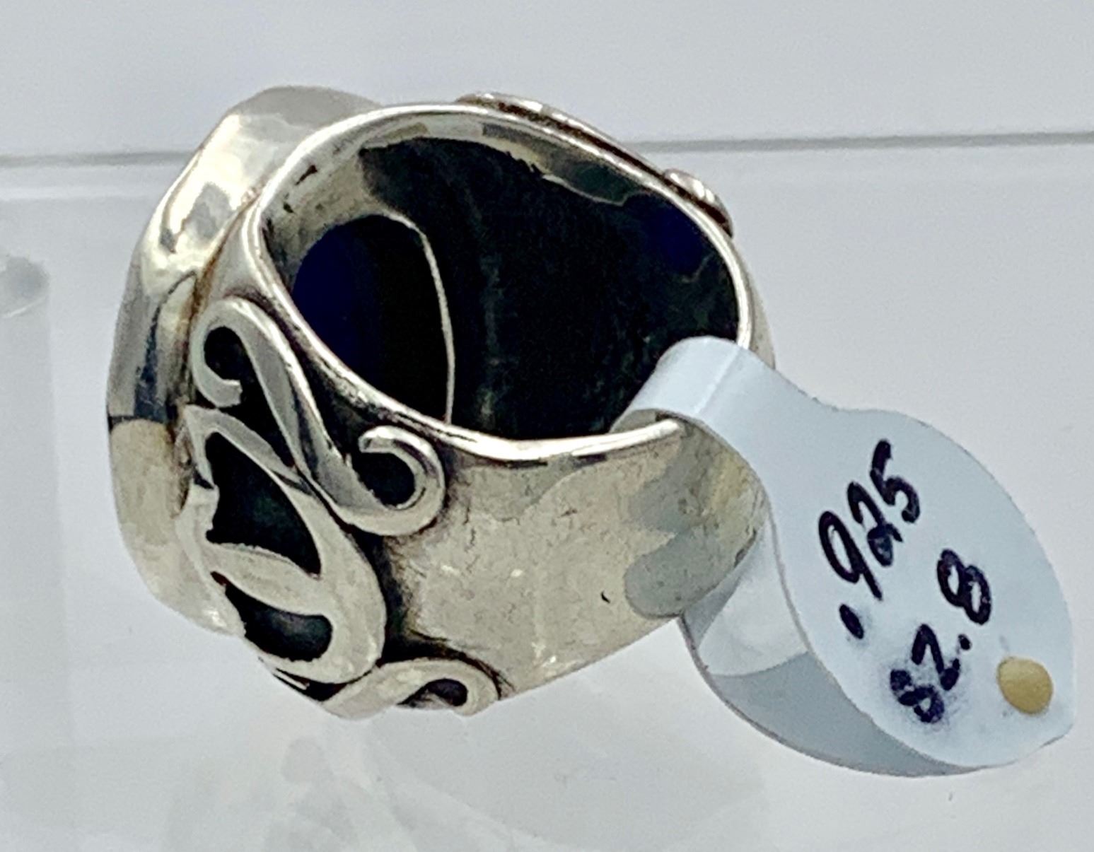 BIG AND BOLD BLUE STONED STERLING SILVER RING. SIZE 8. 28 GRAMS. PRE-OWNED. ESTIMATE:$50-$75
