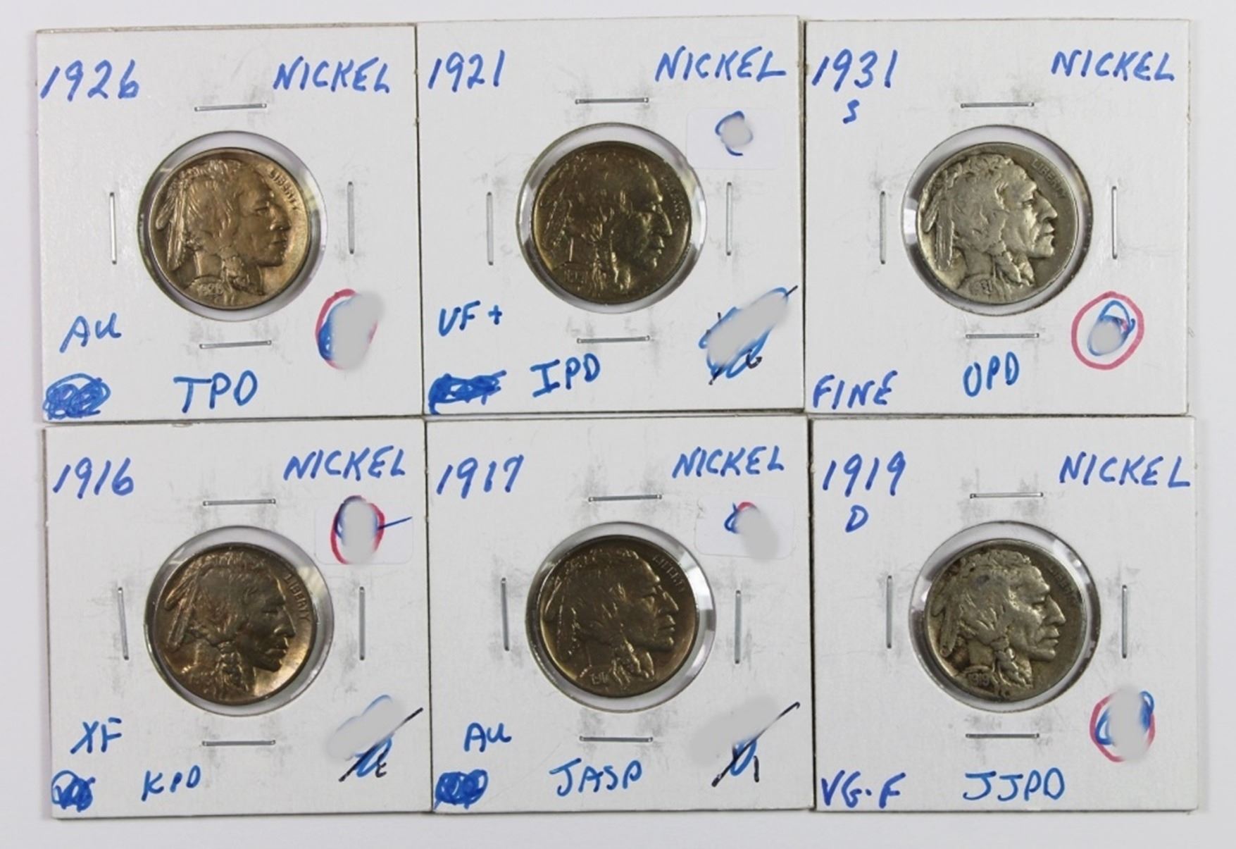 1921 VF+, 1919-D VG-F, 1917 AU, 1916 XF, 1931-S F, AND 1926 AU. ESTIMATE: $125-$150