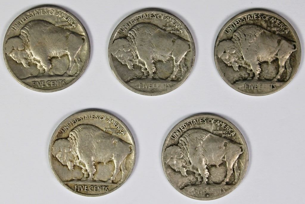 1913 TYPE 1 F-VF, 1913 TYPE 2 VF, 1913-D TYPE 1 F-VF, 1913-S TYPE 1 F-VF, AND 1914 F. ESTIMATE: $100-$125