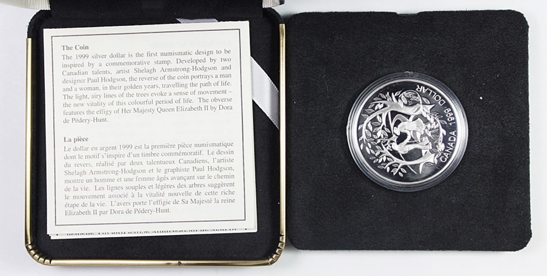 1982 STEER AND 1999 YEAR OF THE OLDER PERSONS PROOF SILVER DOLLAR. ESTIMATE: $75-$150
