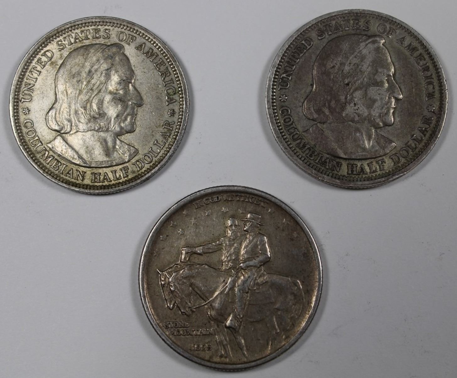 1925 STONE MOUNTAIN AU/UNC AND TWO 1893 COLUMBIAN HALF DOLLARS. ESTIMATE:$100-$150
