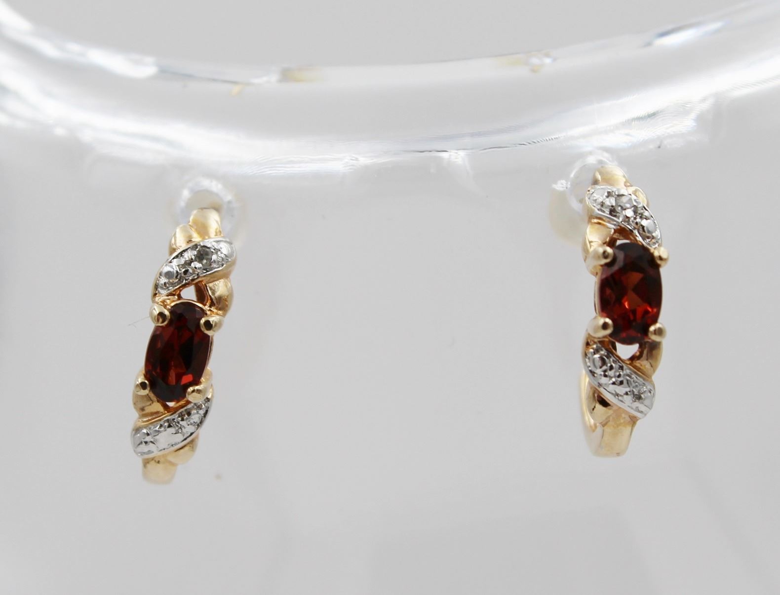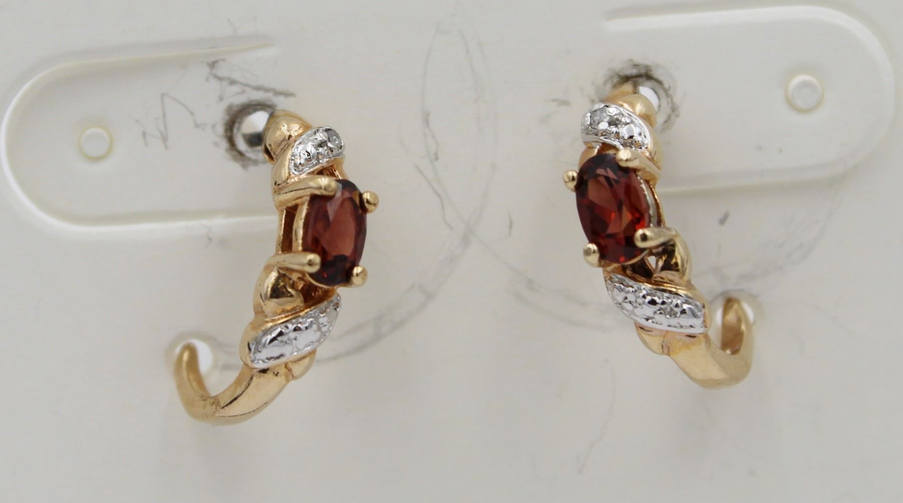 DIAMOND AND RUBY GOLD TONED STERLING SILVER EARRINGS. PRE-OWNED. 2.0 GRAMS. FOR PIERCED EARS. ESTIMATE:$60-$80