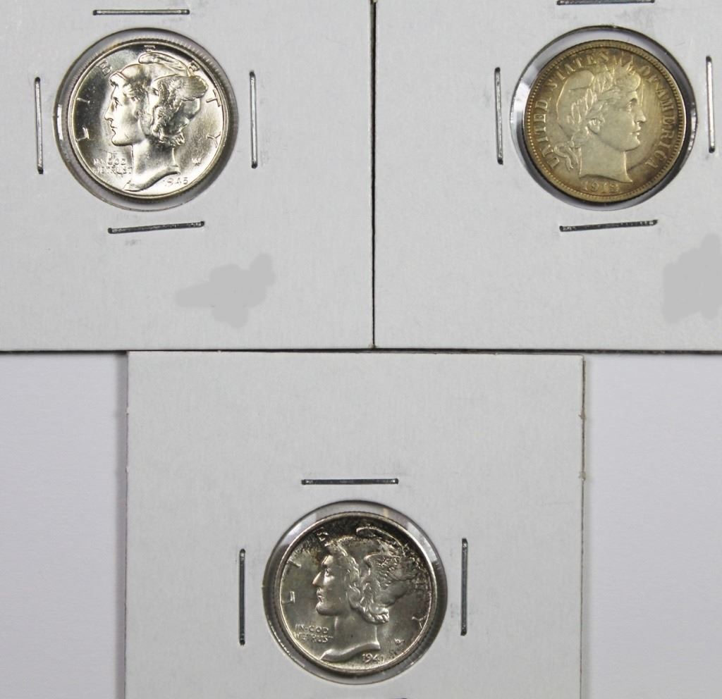 1941-S GEM BU FSB; 1912-D XF AND 1945 SUPERB GEM BU. ESTIMATE: $75-$100
