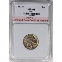 1913-S TYPE 1 BUFFALO NICKEL CCGS SUPERB BU