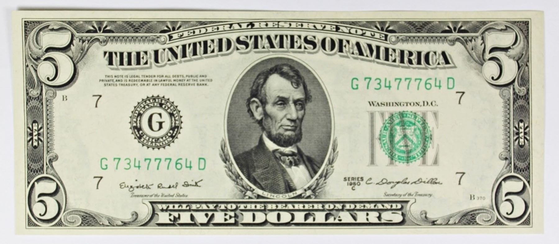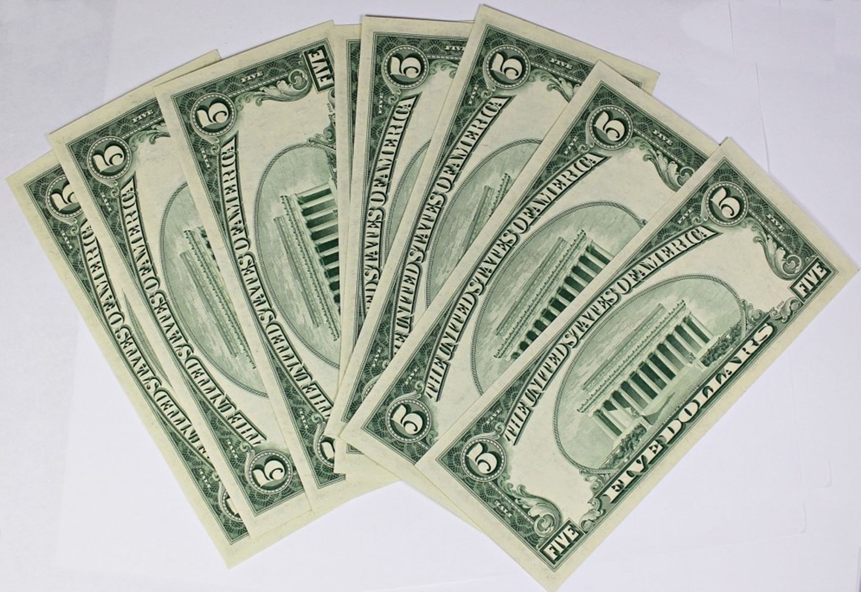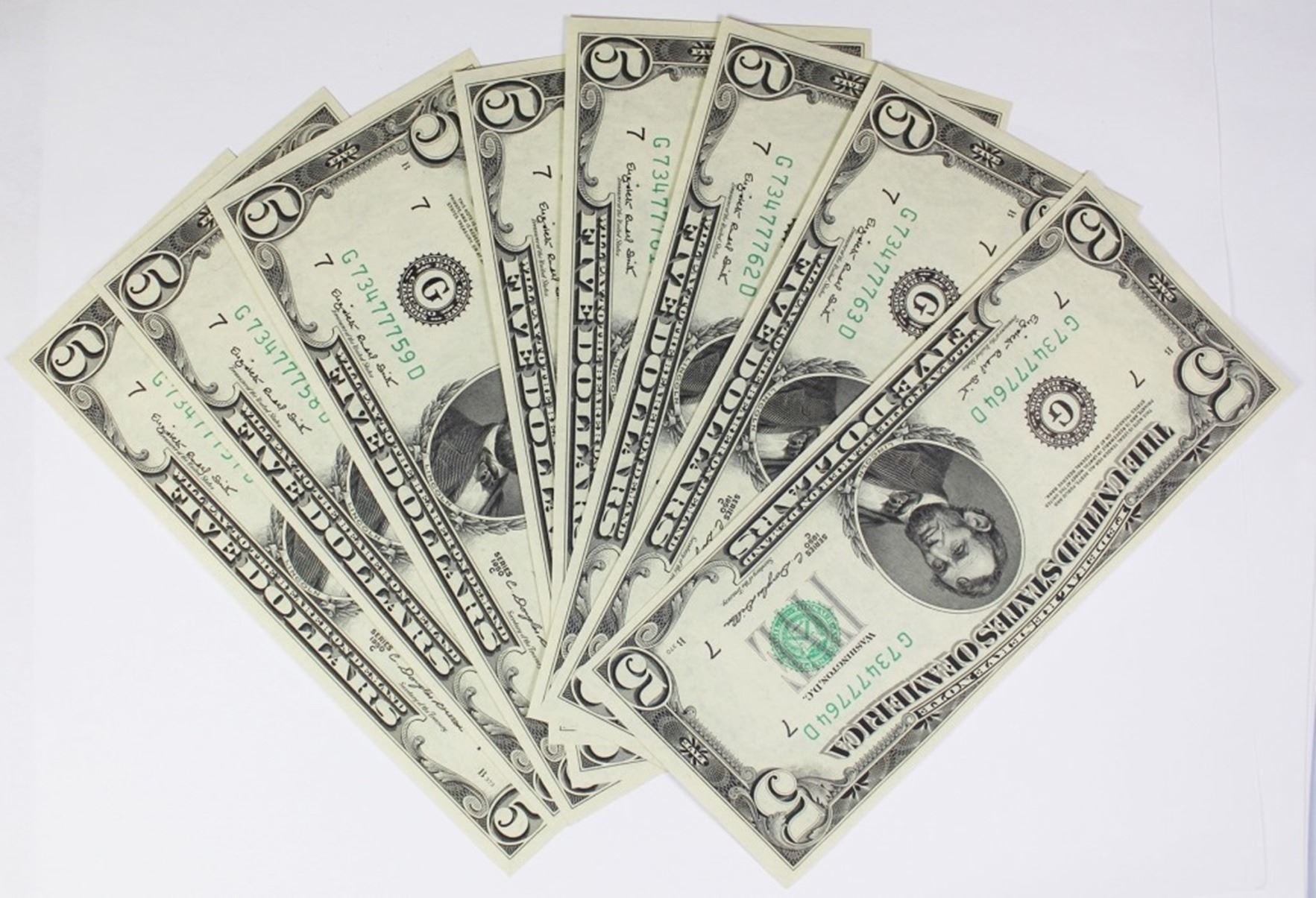 EIGHT 1950-C $5.00 FEDERAL RESERVE NOTES CHICAGO