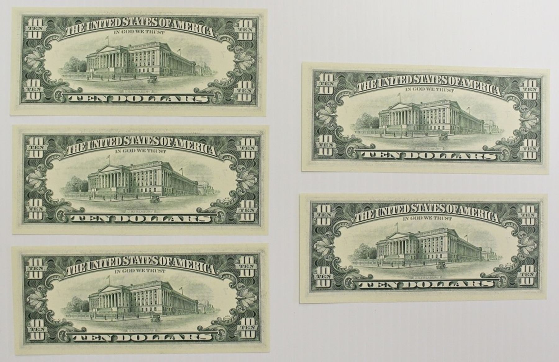 ALL STAR NOTES, ALL ERRORS WITH THE REVERSE SHOWING THRU TO THE OBVERSE! ALL SUPERB UNC! AS THE SERIAL NUMBERS INCREASE, SO DOES THE AMOUNT OF REVERSE SHOWING THRU! ONE-OF-A-KIND DEAL! ALL ERRORS AND STAR NOTES! WOW!