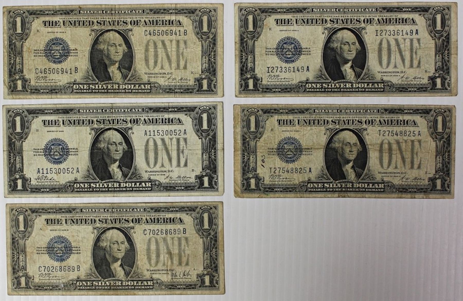 FIVE 1928 $1.00 SILVER CERTIFICATES  FUNNYBACKS