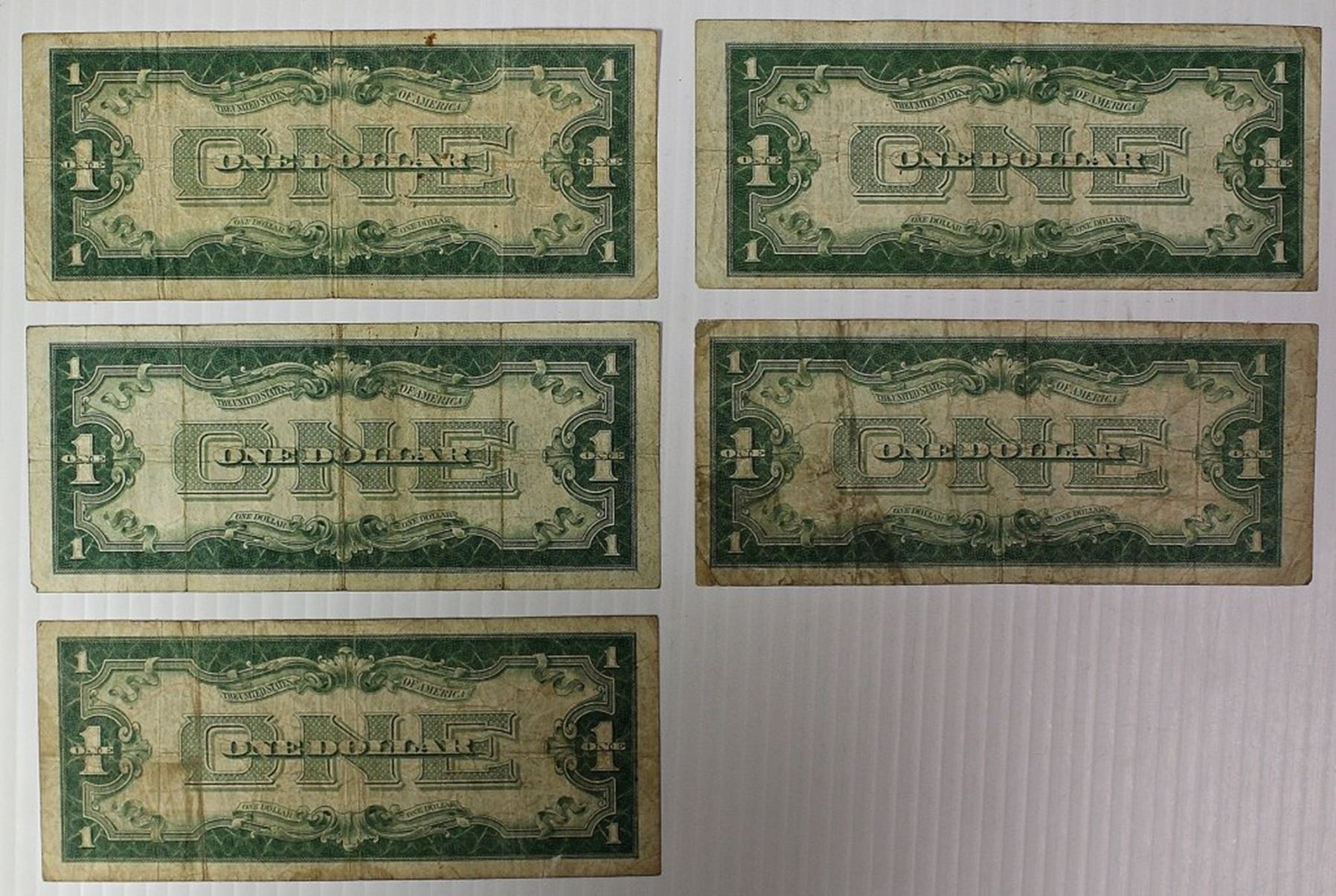 FIVE 1928 $1.00 SILVER CERTIFICATES "FUNNYBACKS"