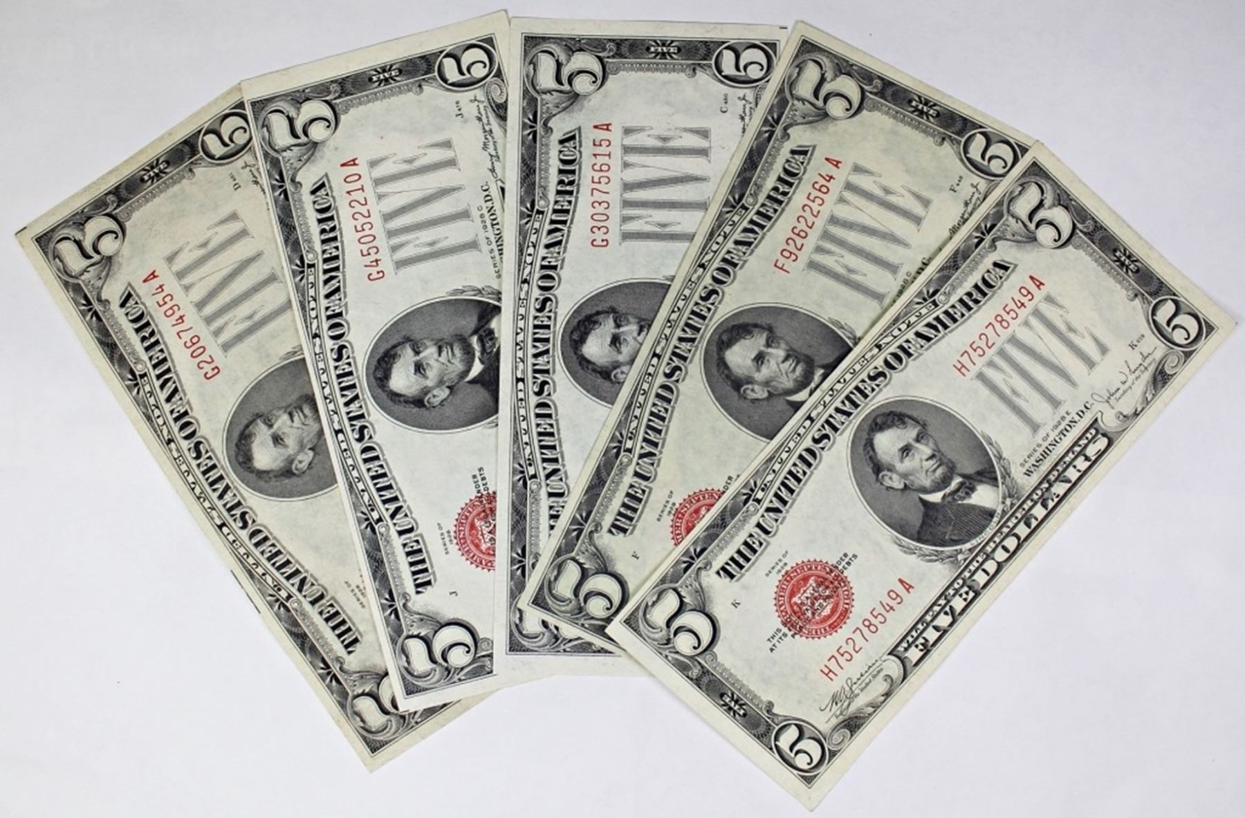 1928-E AU, 1928-C XF AU, 1928-C GEM UNC, 1928-C UNC, AND 1928-C UNC. ESTIMATE: $225-$250