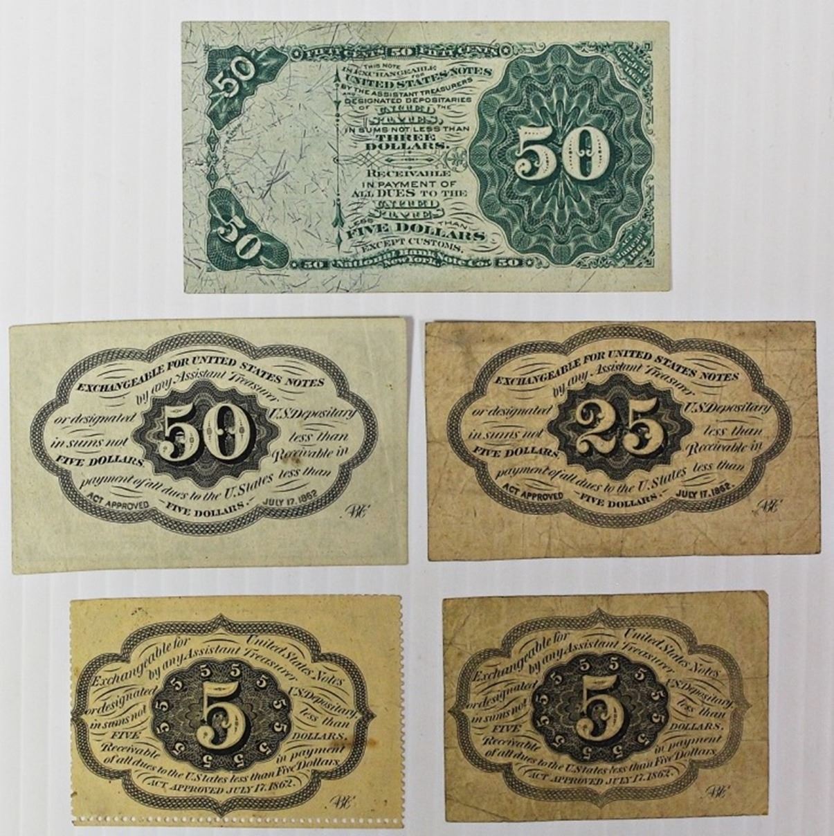 TWO 5 CENT PCS; 25 CENT; AND (2) 50 CENT. ESTIMATE: $300-$350
