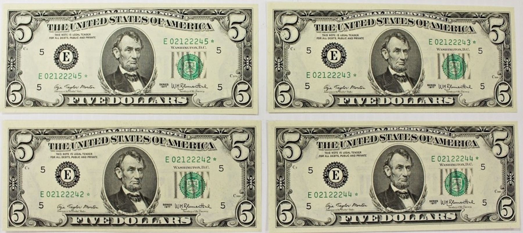 FEDERAL RESERVE NOTES. GEM UNC. CONSECUTIVE SERIAL NUMBERS, SUPERB SET OF FOUR! ESTIMATE: $600-$700