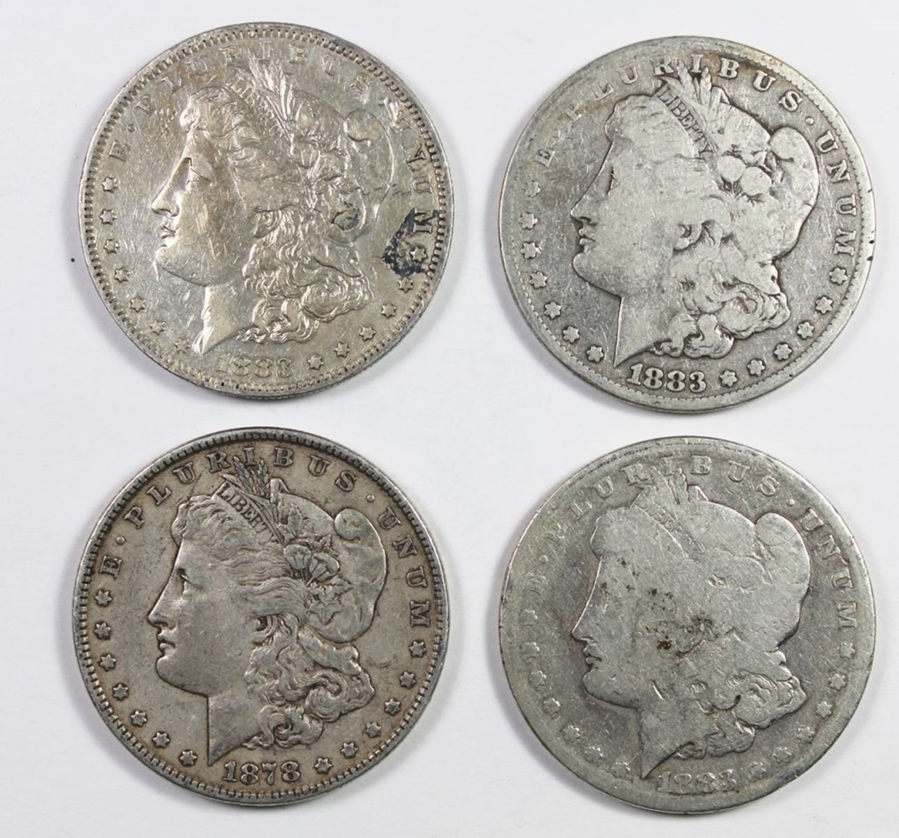 1883-S VG; 1883-S AG; 1883-S XF; AND 1878 7F EXTRA FINE. ESTIMATE: $110-$150
