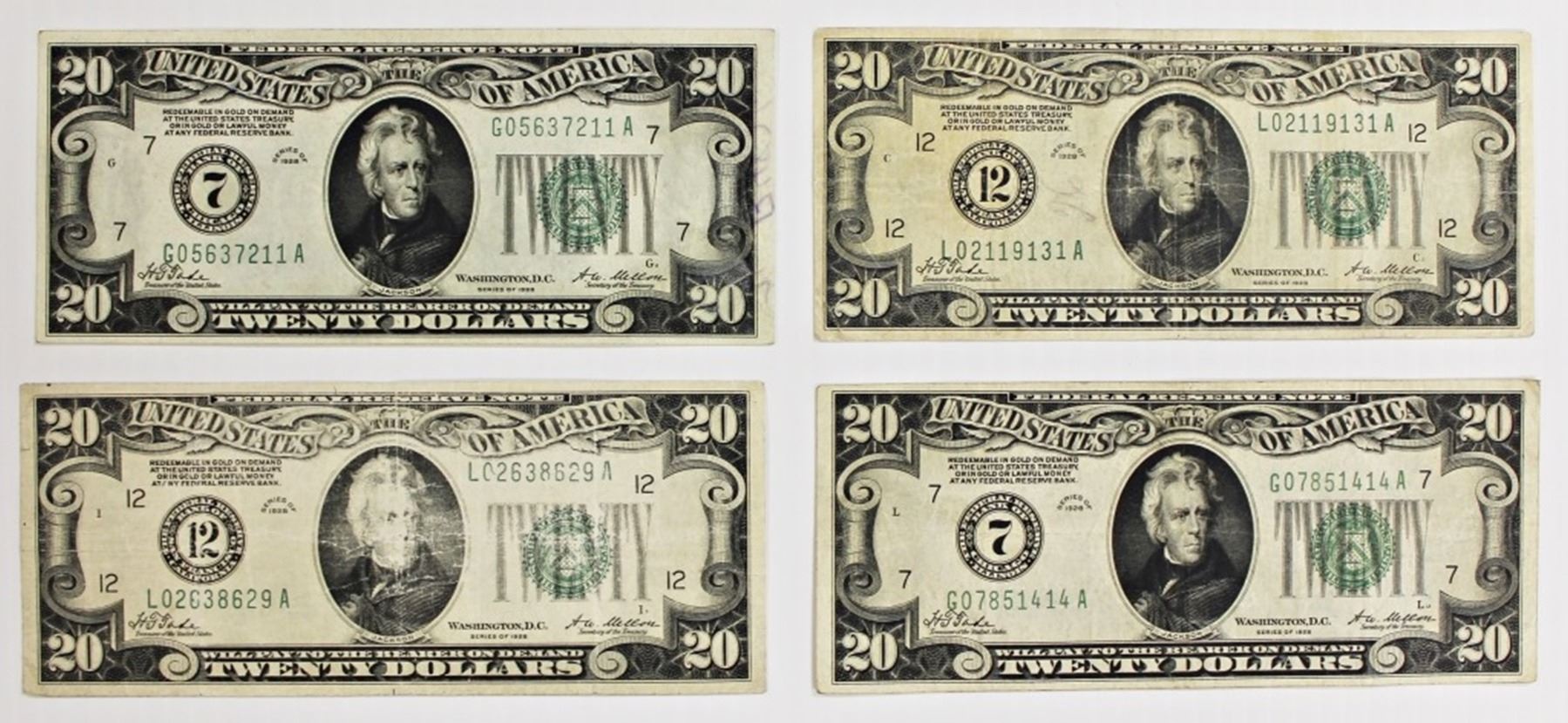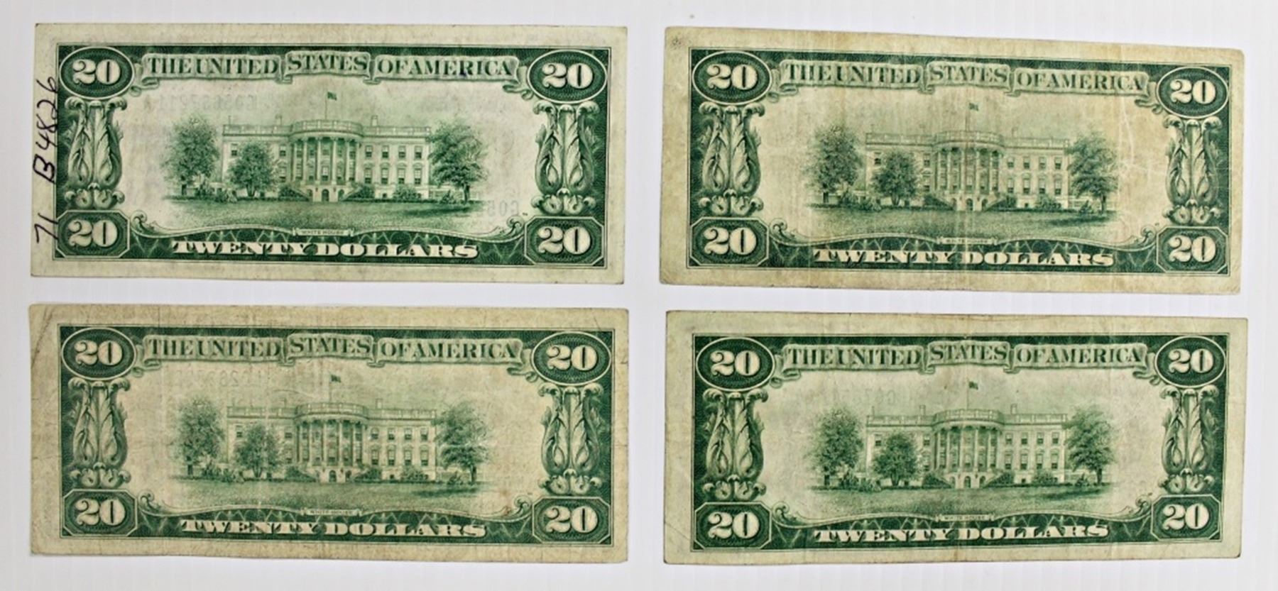 SAN FRANCISCO FINE, SAN FRANCISCO VF, CHICAGO VF, AND CHICAGO AU WITH WRITING ON BACK. ESTIMATE: $220-$250