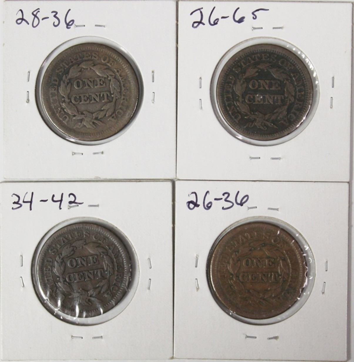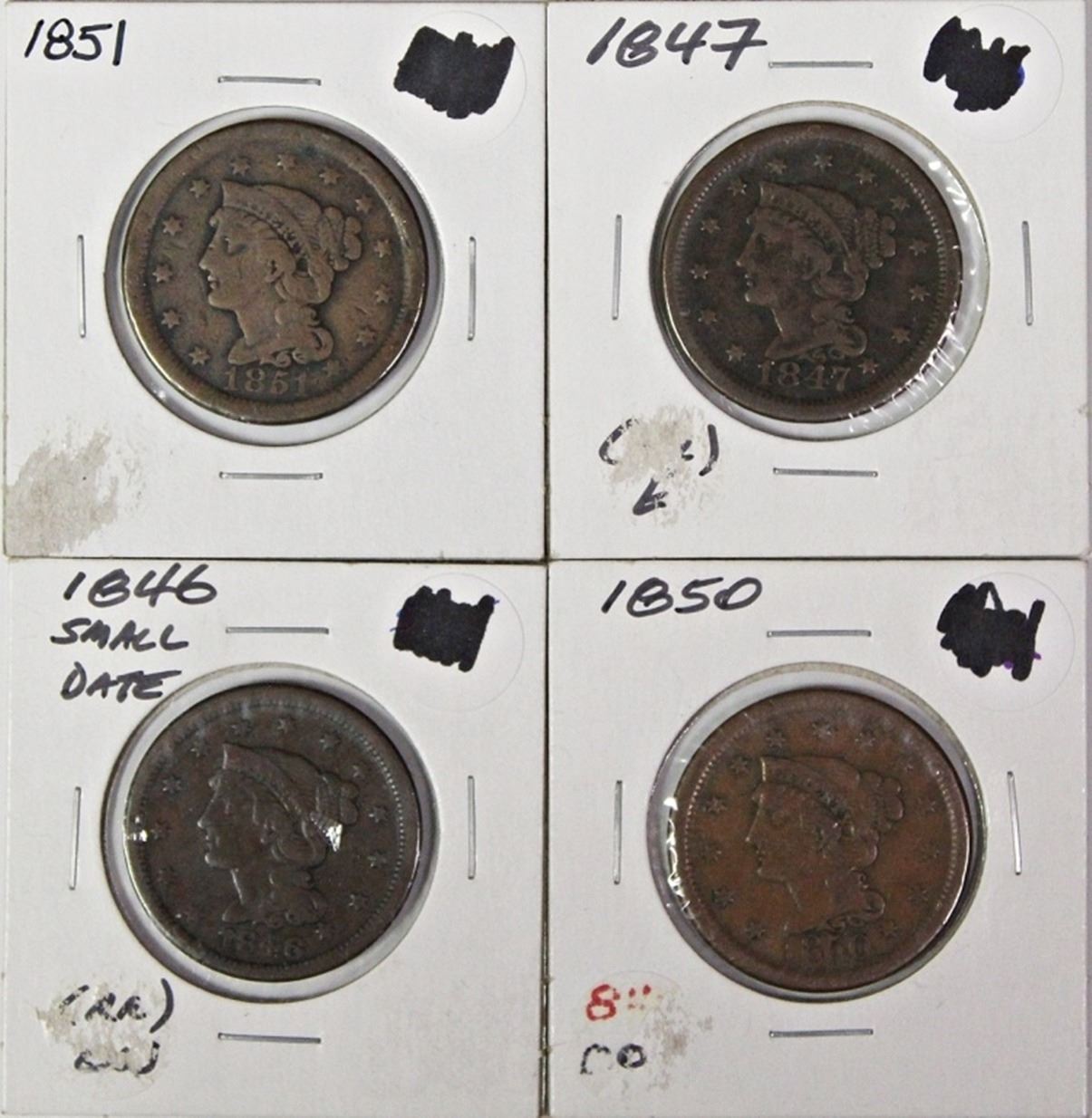 1846 F-VF, 1850 VF, 1847 FINE, AND 1851 VG. ESTIMATE: $100-$125
