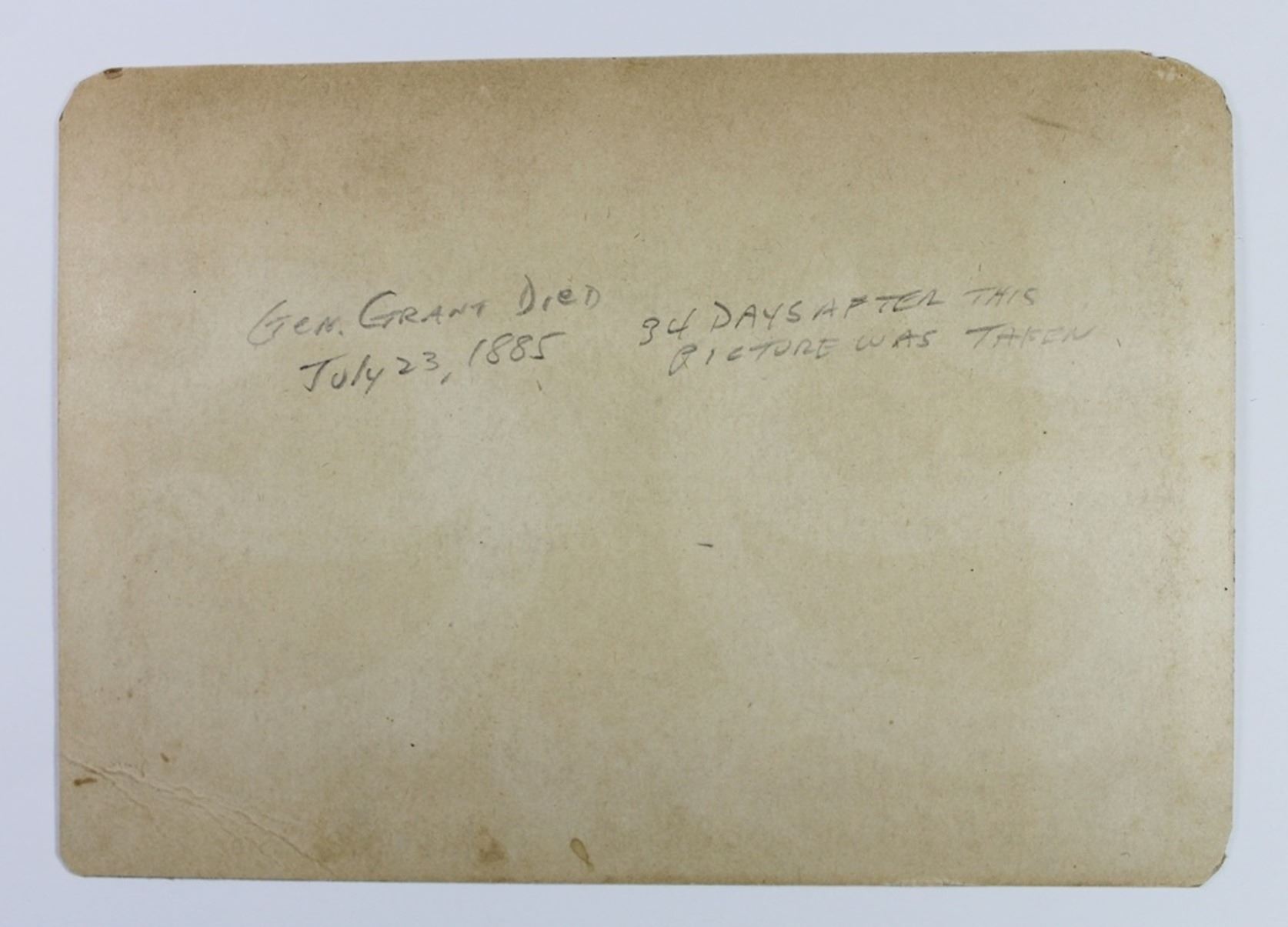 CARTE DE VISITE OVERSIZED 6 1/4 X 4 1 1/2". DIED JULY 23, 1885. TAKEN 34 DAYS BEFORE HIS DEATH. XF CONDITION. ROUNDED EDGES FIRST SEEN. ESTIMATE: $250-$350