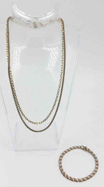 2 NECKLACES, 1 BRACELET, PRE-OWNED, SEE PHOTOS! TOTAL 20 GRAMS ESTIMATE: $50-$75