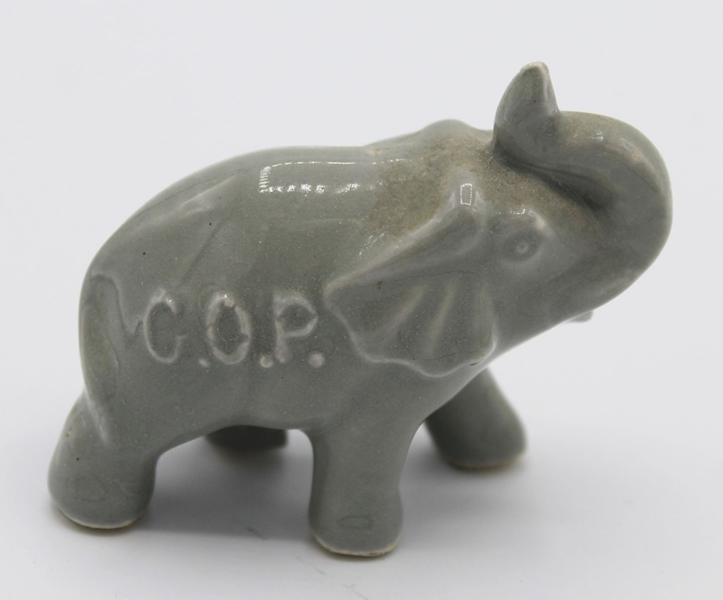 PORCELAIN - NO CHIPS. VERY NICE. PATINA 3" X 2". NEEDS MORE RESEARCH. 1940'S. ESTIMATE: $75-$100