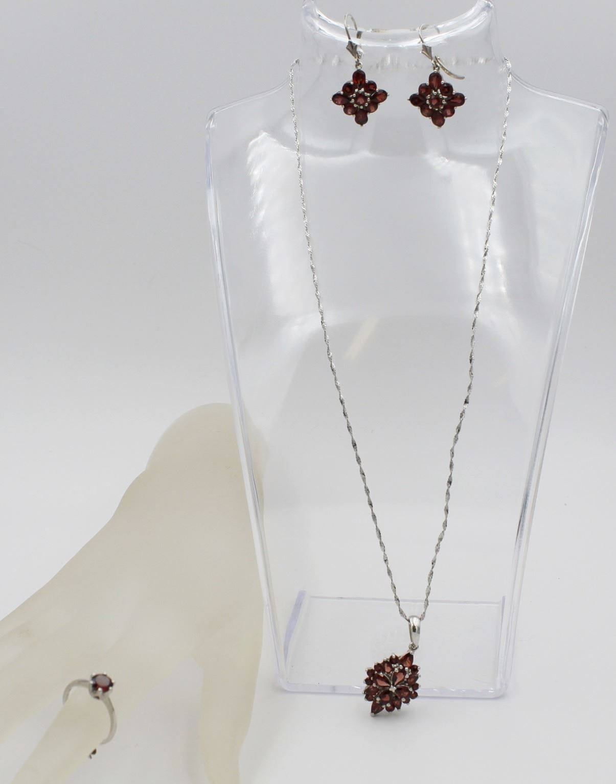 GORGEOUS REDDISH-ORANGE EARRING, NECKLACE AND RING SET .925