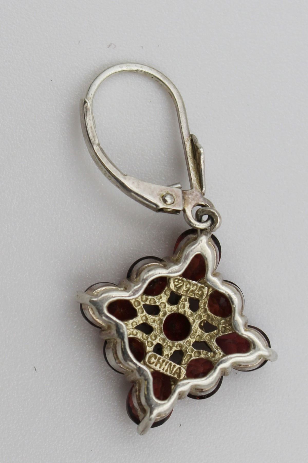 GORGEOUS REDDISH-ORANGE EARRINGS, NECKLACE AND RING SET. STERLING SILVER. RING SIZE 6.5. NECKLACE 17.5" AND EARRINGS FOR PIERCED EARS. PRE-OWNED. 13.1 GRAMS TOTAL WEIGHT. ESTIMATE: $100-$125