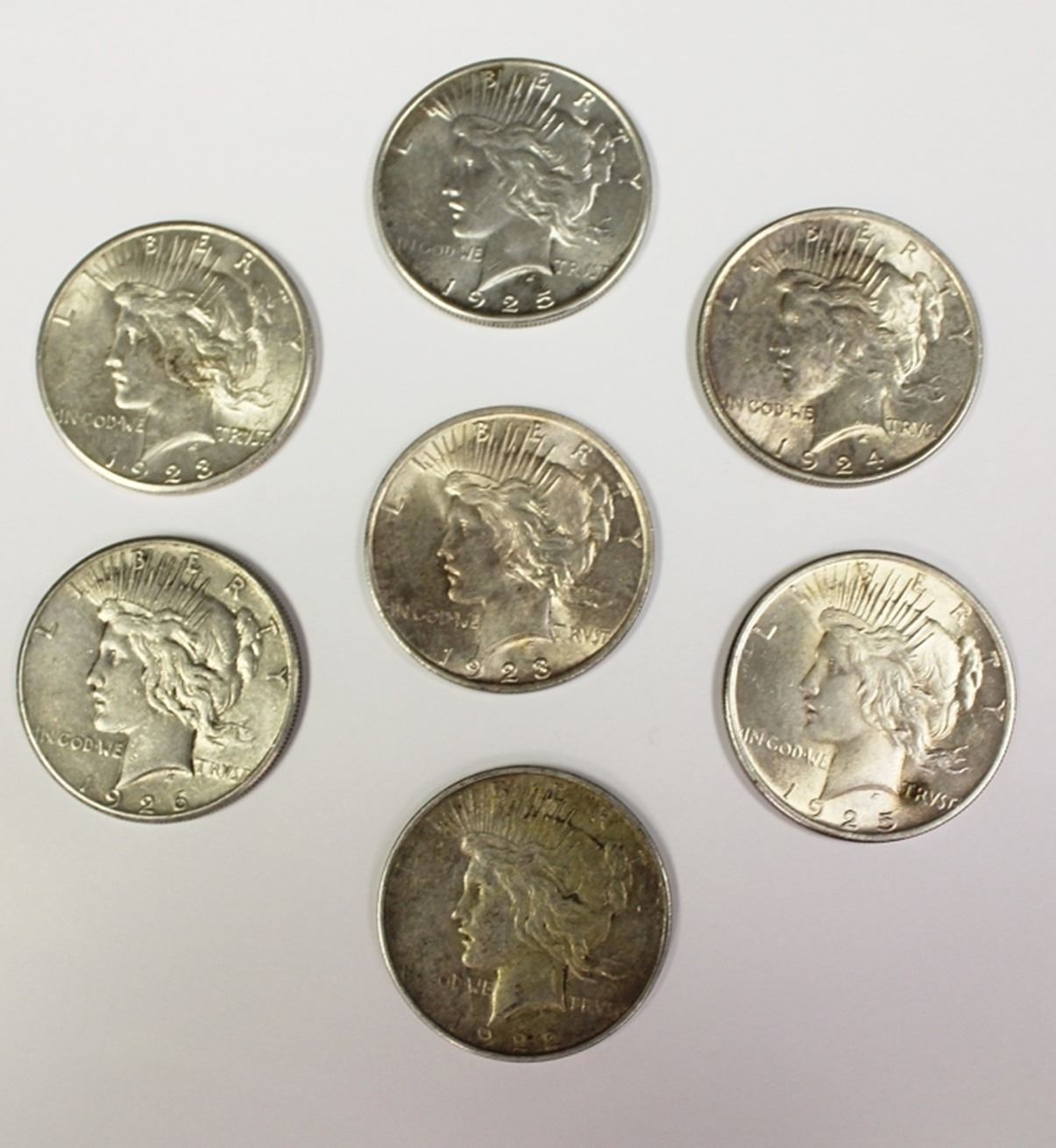 1923-S AU, 1925 AU, 1926-S XF, 1922 VF,1924 BU, 1925 BU AND 1923 BU. ESTIMATE: $125-$175