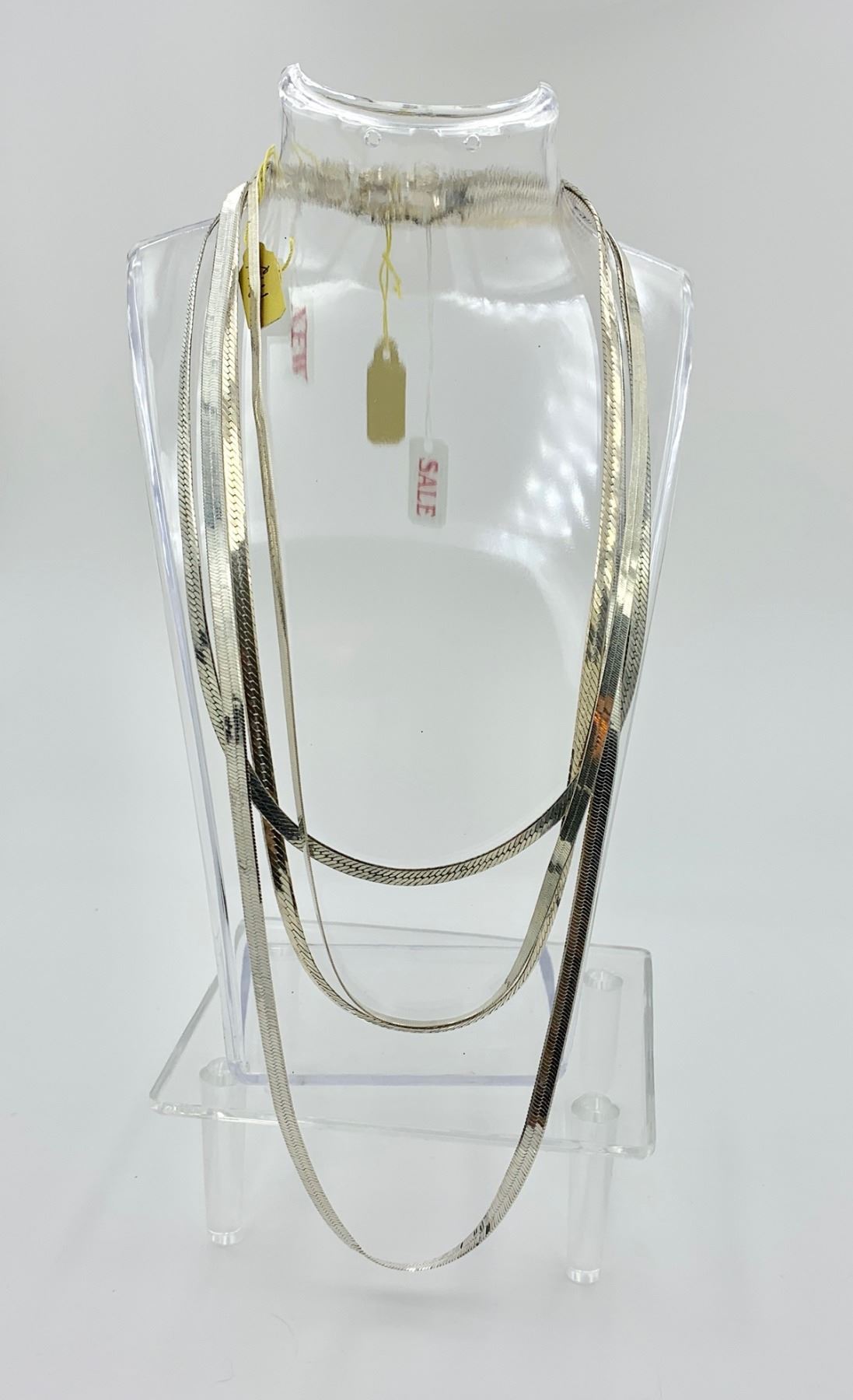 GROUP OF 4 HERRINGBONE ITALY .925 SILVER CHAINS. VARIOUS LENGTHS: 17", 19.5", 24", AND 19". PRE-OWNED. TOTAL WEIGHT: 42.5 GRAMS. ESTIMATE: $75-$100