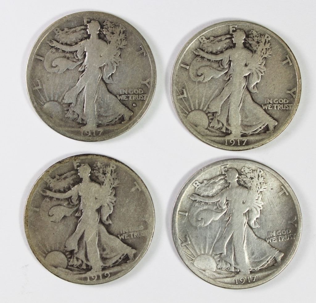 1917-S REVERSE VG/FINE, 1917-S OBVERSE VG, 1917-D REVERSE VG AND 1919-D GOOD-VG. ESTIMATE: $115-$150