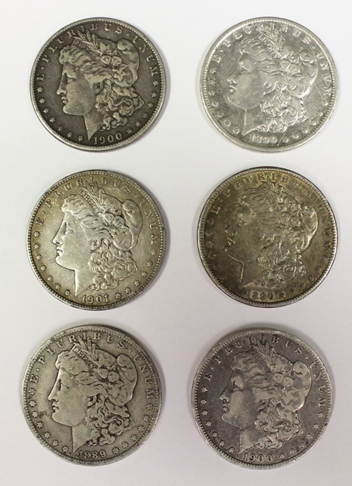 1901-O, (2) 1900-O, 1889-O, 1890-O AND 1890. ESTIMATE: $125-$175