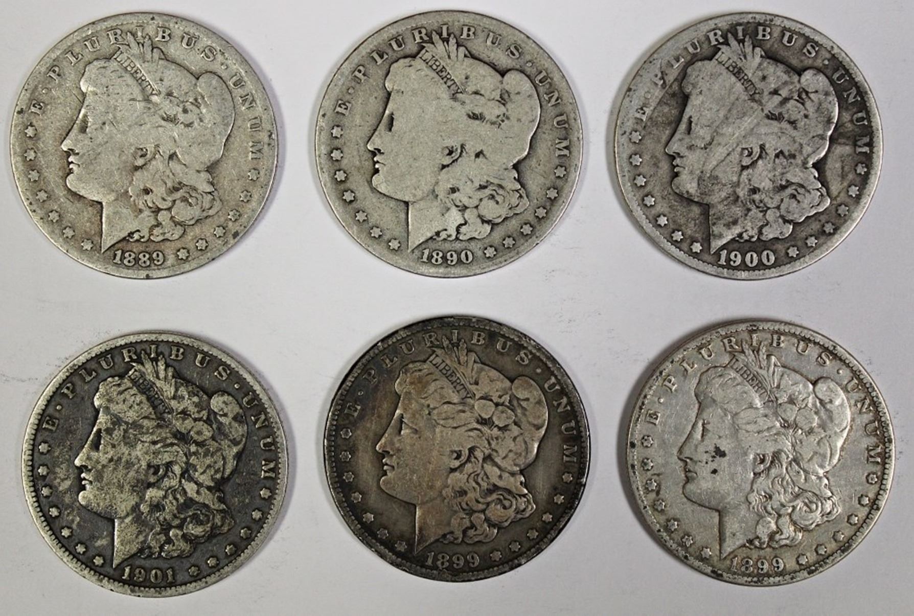 1889-O, 1890-O, 1899-S, 1899-O, 1900-O, 1901-O. ESTIMATE: $125-$175