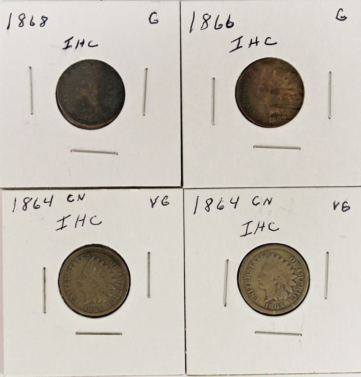 TWO 1864 BOTH VG, 1866 G, AND 1868 G. ESTIMATE: $75-$100